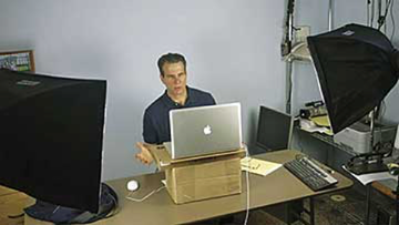 - Place camera lens at eye level or slightly above. Sit laptop on books if necessary